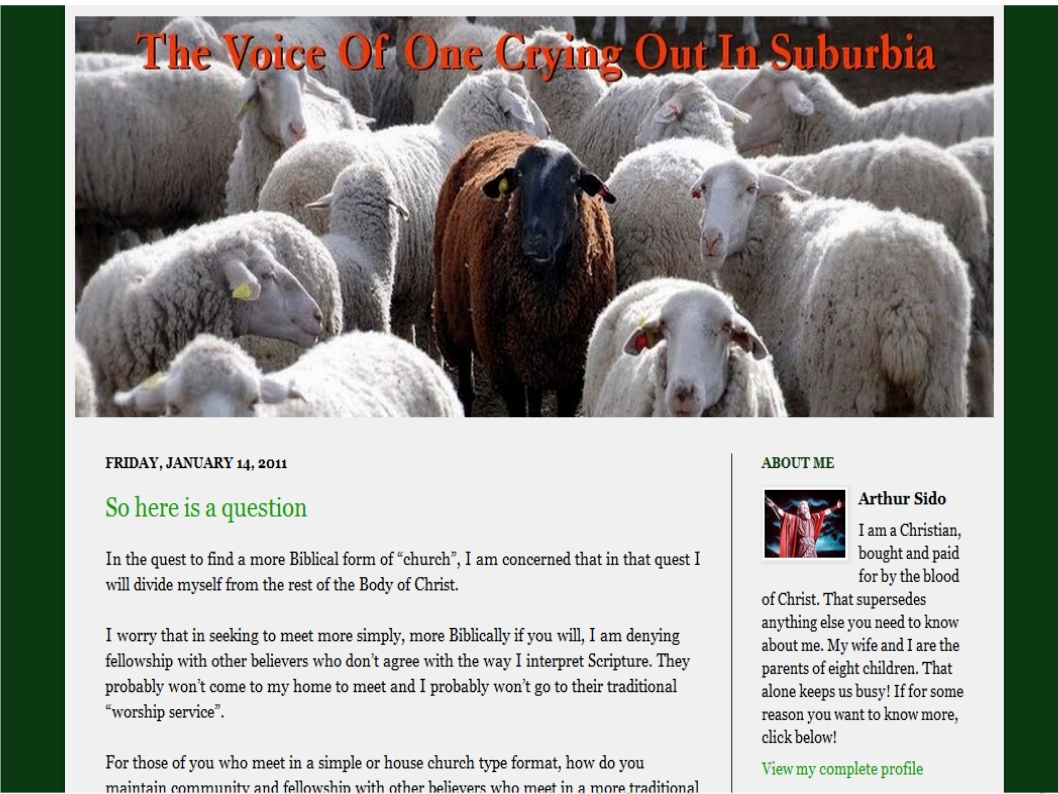 Two years ago, Arthur Sido meant nothing to me. Yet the wonders of this Internet business allowed me through various sources to come across Sido’s blog The Voice Of One Crying In Suburbia.