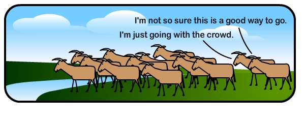 I’m sure this is not how community works at all. I’m sure people freely decide to think things through carefully for themselves so they know why they are doing what they are doing. I’m sure people who have views, opinions and beliefs are in no way pressured to do so by their peers and contemporaries. I’m sure that we are not swayed by persuasive speakers with smooth words.