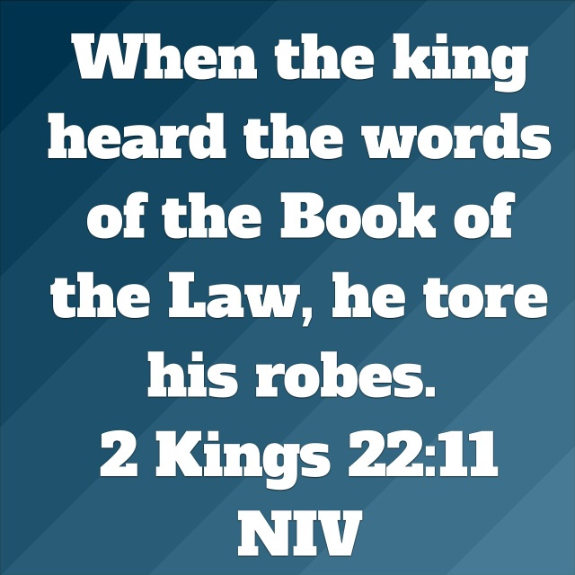 It is the response of this young man that leaves such a strong impact on this reader. He heard the Word of God and he tore his robes. An utter and abject sense of the state of the people in such a sorry condition in comparison to the requirements of their Lord and Redeemer. The outward expression of the inner despair. This was not something to take lightly or glibly. Such was his heart to God that hearing His Word and being only too aware of the state of the people compelled him to a state of godly sorrow.