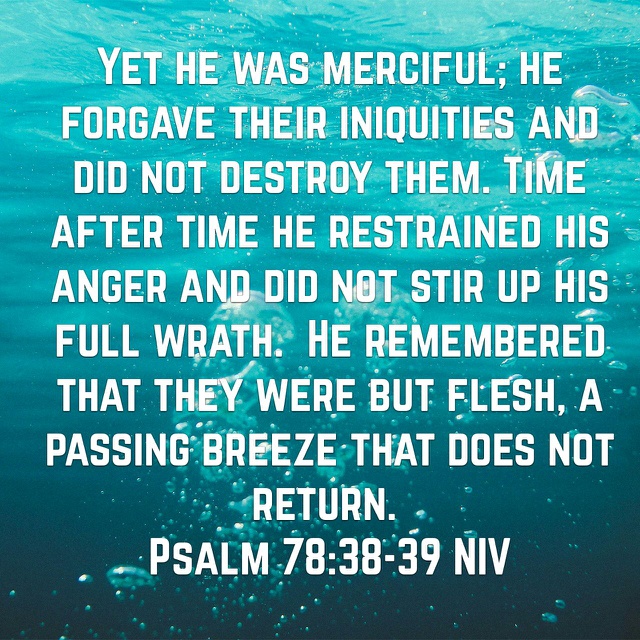 This Psalm is a long and tragic outline of how like a Father, God looked after His people. So many great acts done for them. Yet like that stroppy child, His people refused to acknowledge and remember all the good things that was done for them. Flagrant in their ignorance they would grumble against God and constantly put Him to the test. That degree of unruly behaviour lead to them reaping the consequences in some cases very heavy consequences.